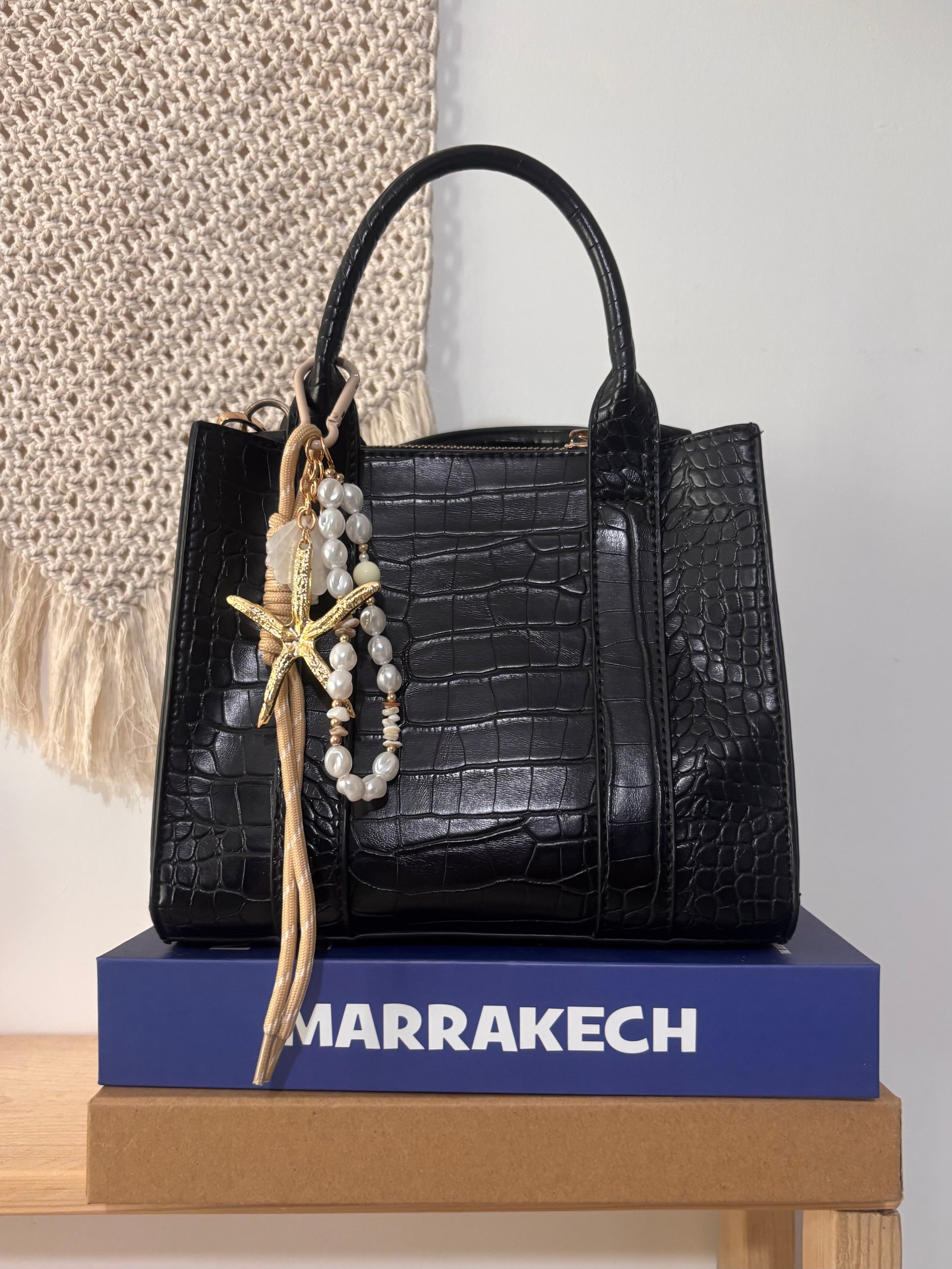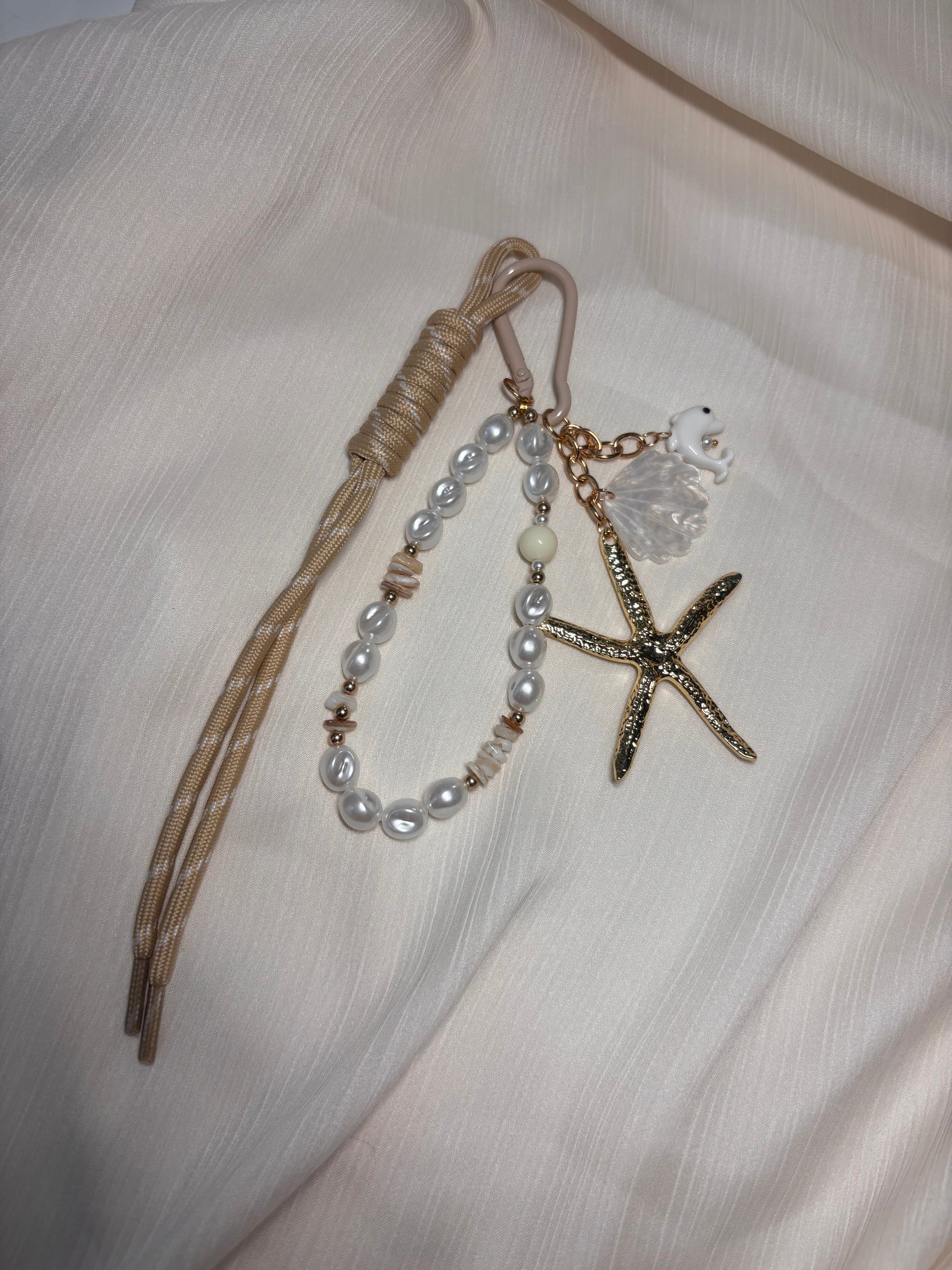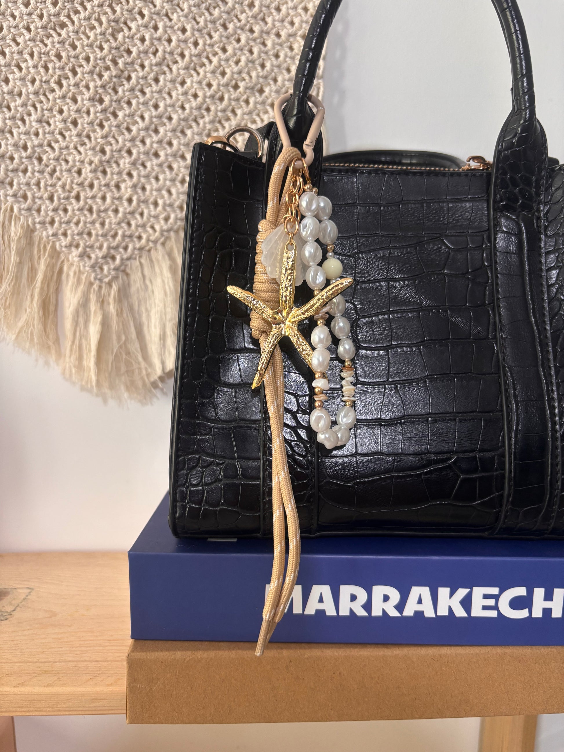 Entre coquillages, perles nacrées et étoile de mer dorée, ce grigri est une ode à l’été. Raffiné, doux et élégant, il sublime ton sac en lui donnant ce petit truc "dolce vita". Une pièce qui sent bon le sable chaud, même en plein hiver. Boho chic, rêve d’été, élégance naturelle. À porter sans modération.