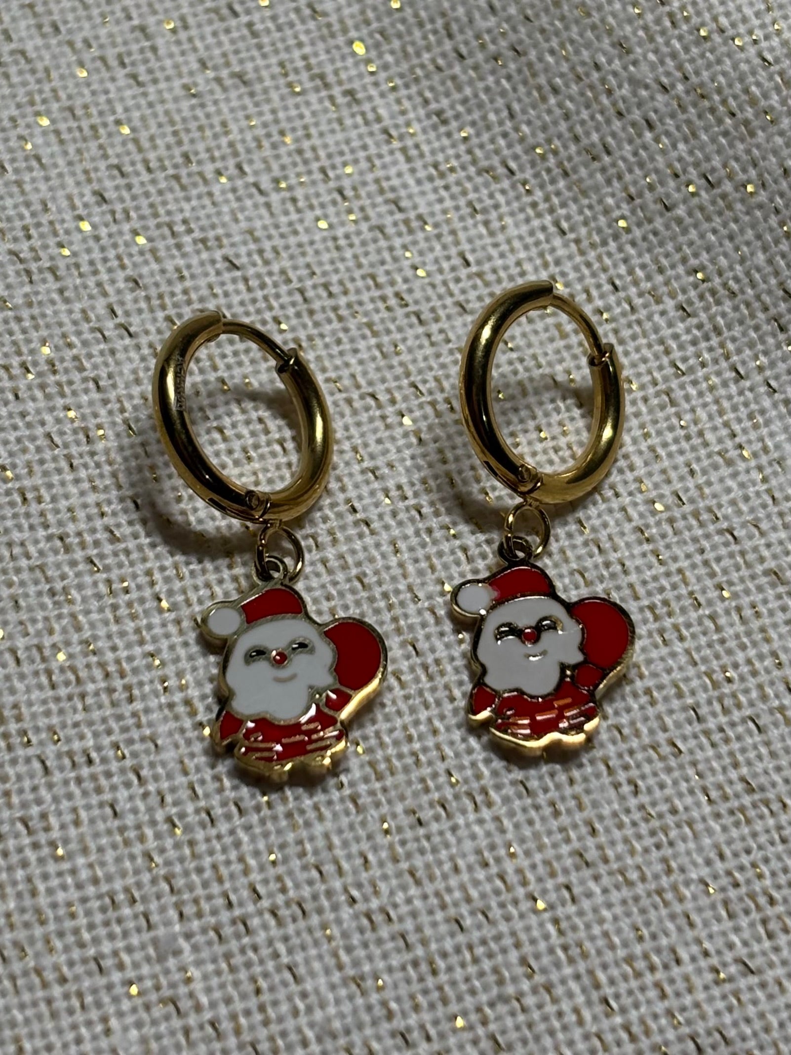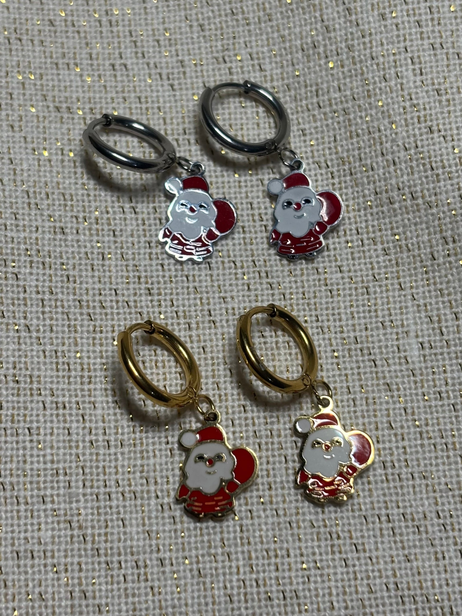 Ajoutez une touche de magie à vos fêtes avec ces petites créoles ornées de pendentifs de Noël en forme de Père Noël. Légères, élégantes et hypoallergéniques, elles subliment vos tenues tout au long du mois de décembre. Parfaites pour offrir ou pour se faire plaisir !