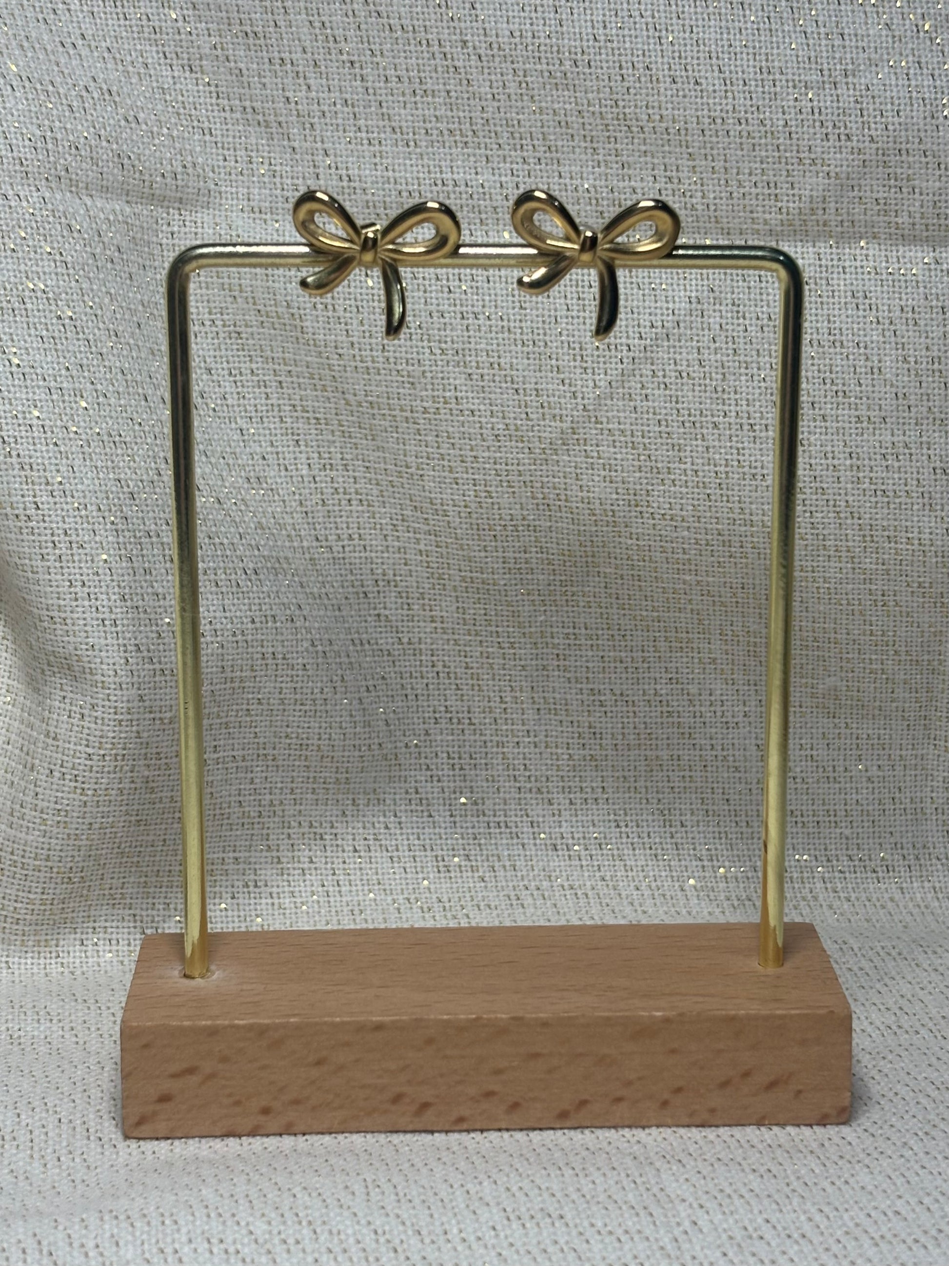 Ces boucles d'oreilles en forme de nœud doré séduisent par leur design minimaliste et féminin. Elégantes et faciles à porter, elles s'adaptent à toutes les occasions et complètent parfaitement une tenue.
