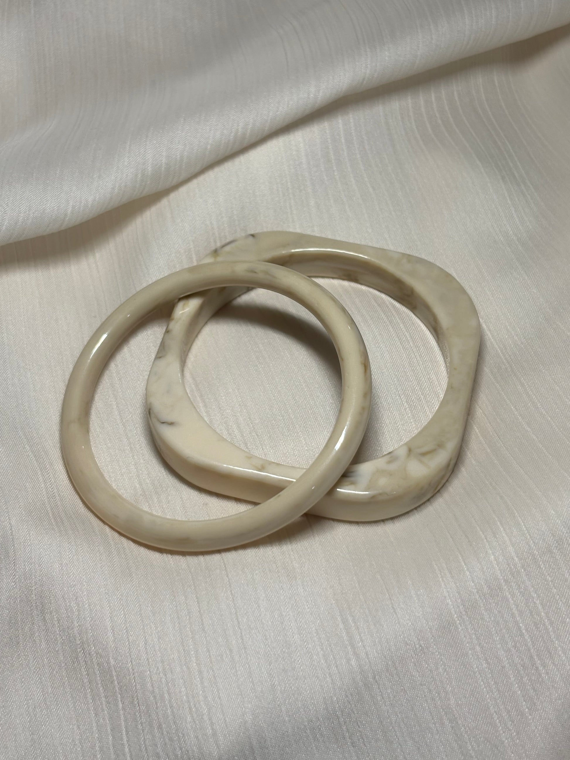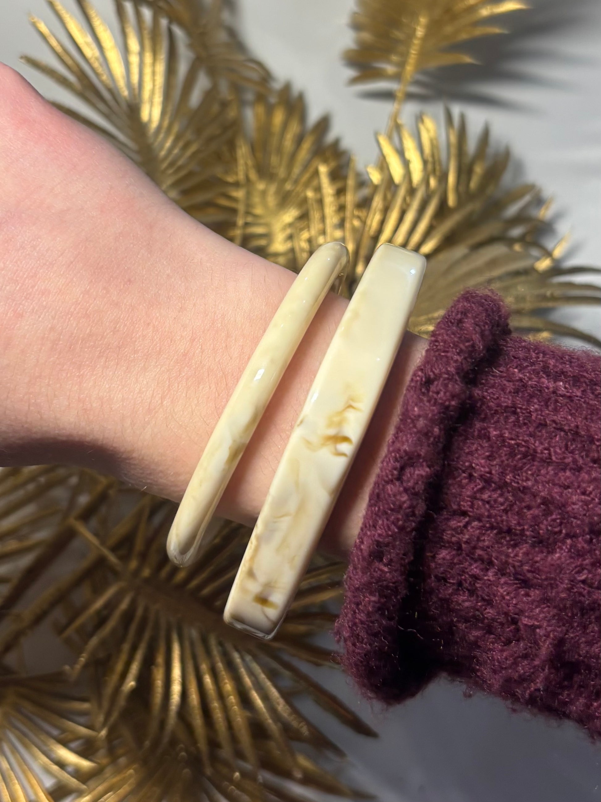 Leur finition lisse et brillante met en valeur les nuances subtiles du marbré, rendant chaque bracelet unique. A porter ensemble pour un look affirmé ou séparément pour une allure plus discrète.
